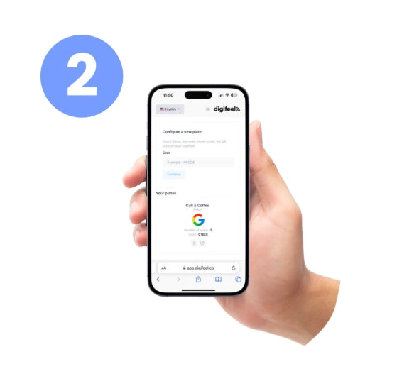 Serás dirigido a nuestra app móvil. Regístrate e introduce el código que viene impreso en tu placa. (Simple y sencillo)